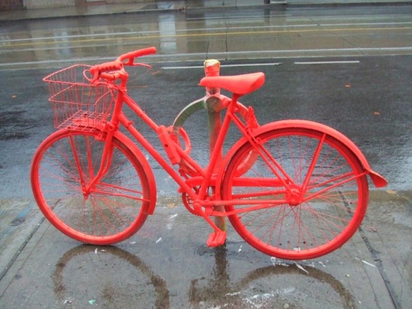 Ya muy tarde mi bicicleta me lleva a través de la ciudad.