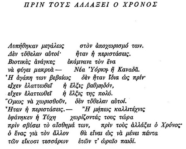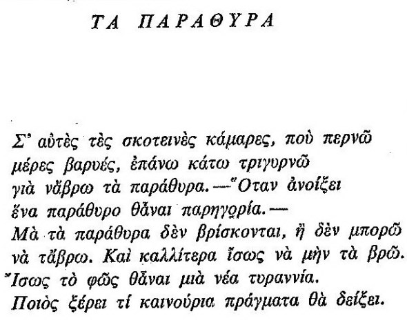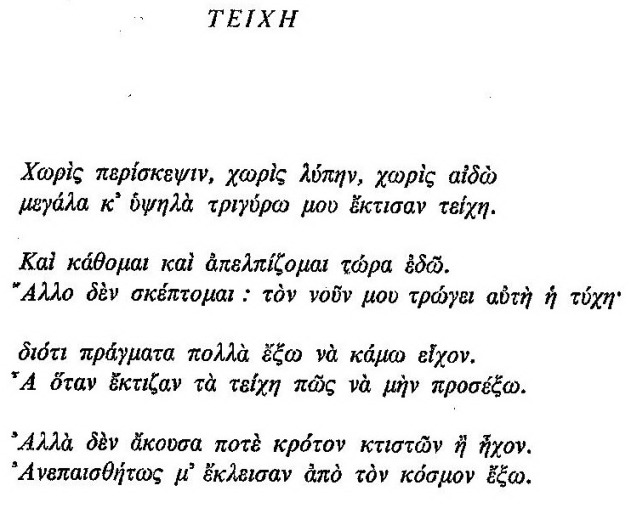 Cavafy indicating – at least in the Truth that was his much-cherished