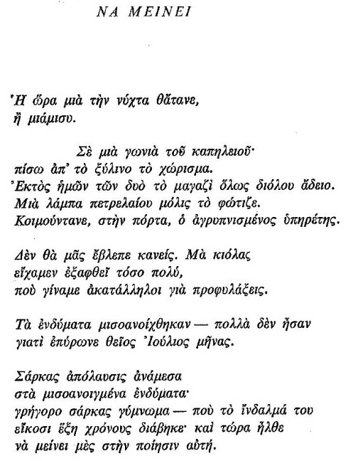 Posted: July 1, 2012 Filed under: English, Greek, Konstantin Kavafis | Tags: Gay poets Comments Off on Konstantin Kavafis / Κωνσταντίνος Καβάφης: “I went into the brilliant night and drank strong wine, the way the Champions of Pleasure drink.”