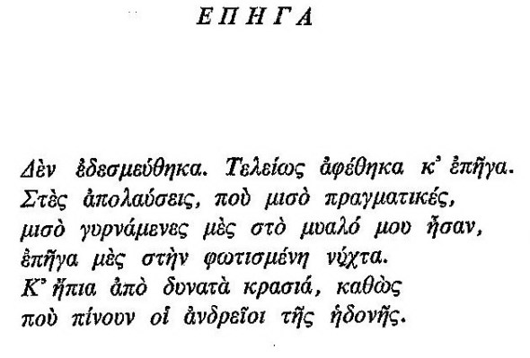 Konstantin Kavafis / Κωνσταντίνος Καβάφης: “I went into the brilliant night and drank strong wine, the way the Champions of Pleasure drink.”