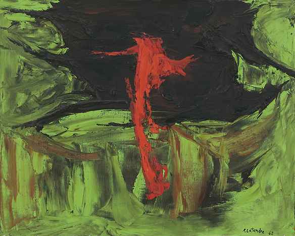 Rita Letendre, born in Drummondville, Québec, in 1928, is an internationally-acclaimed painter. She is one of the great stars of Canadian art, emerging with a breath-taking Modernist boldness during the 1970s. Her father was Québécois and her mother Abenaki (an Algonquian people). In her twenties she associated with Paul-Émile Borduas’ automatistes and her first solo show took place at the Montreal gallery L’Échourie in 1955. Her “classic” paintings in hard-edged, geometric abstraction – with their strong arrow motif – are instantly recognizable. The artist, a force even in her 80s, says: “La lumière, depuis le premier choc à la naissance, jusqu’au dernier souffle – la lumière est la vie. En tout cas, ç’a été ma vie!” / “Light, from the first shock at birth up to the last breath, is life. Anyway, that’s been my life!”