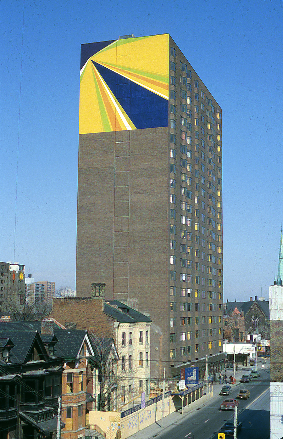 Rita Letendre_Sunrise_a mural on the side of Neill Wycik Residence, Gerrard Street East in Toronto_1971