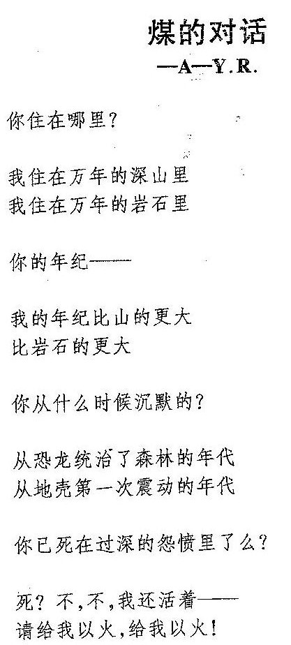 Ai Qing (pen name of Jiang Haicheng, 1910-1996) was Ai Weiwei’s father, and a notable poet of the Mao Zedong era in China. In his early 20s Ai Qing was imprisoned for two years for opposing the Kuomintang; in 1957 he was sent to a hard-labour camp for criticizing his government in print; he spent the next twenty-plus years emptying latrines and so forth as part of his “mental correction” for Wrong Thought under Mao. We feature here a selection of Ai Qing’s poems…