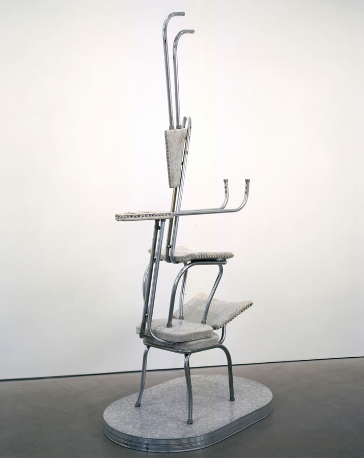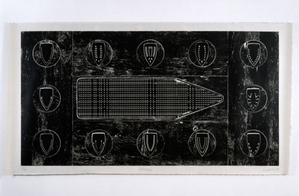 Posted: February 23, 2014 Filed under: IMAGES Comments Off on Willie Cole: Neo-African sculpture with American plentyFor the decade of the 1990s, Willie Cole (born 1955) was inspired principally by the archaic cast-iron steam iron. The Newark, New Jersey-born sculptor and conceptual artist created faux–anthropological research into The People of Iron a.k.a. The Cult of The Domestic. By the end of the decade he had chronicled their journey from slavery to freedom through sculpture, printmaking – and branding (with iron, that is). The elliptical association with the fact of American slavery cannot be missed by any viewer with historical intelligence. Cole’s shoe sculptures, and those with hair dryers, bicycle parts, kitchen chairs and so forth, are visually strong and metaphorically rich – and only an African-American sculptor could use materials in this way to create something fresh and “American” yet linked to the beauty of African “traditional” art.