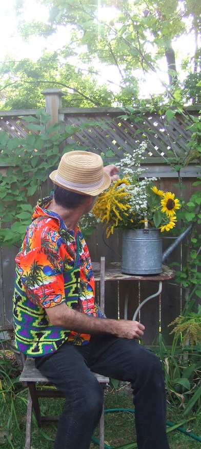 An End of Summer bouquet in a watering can_Goldenrod_Asters_Sunflowers_September 2014