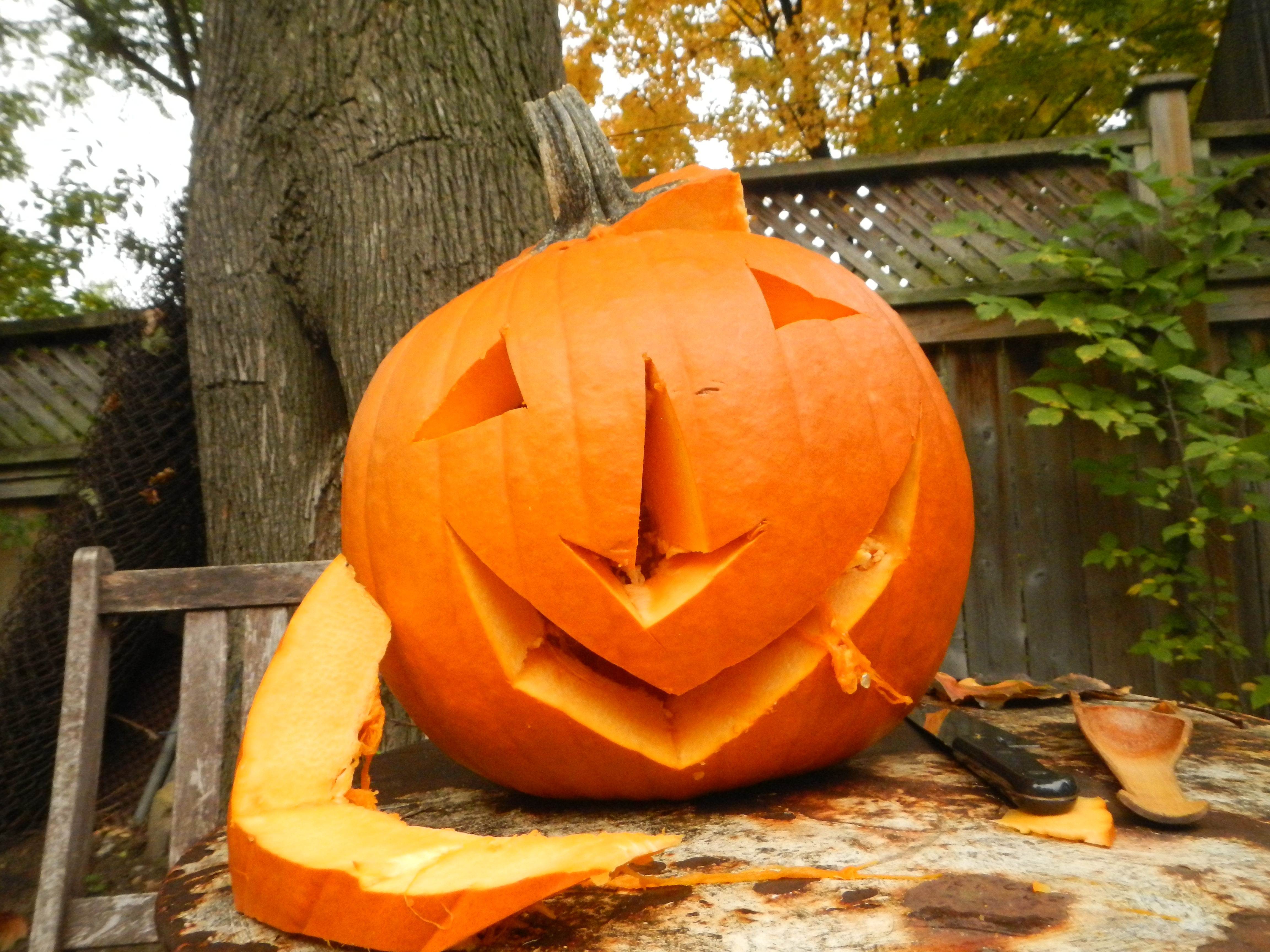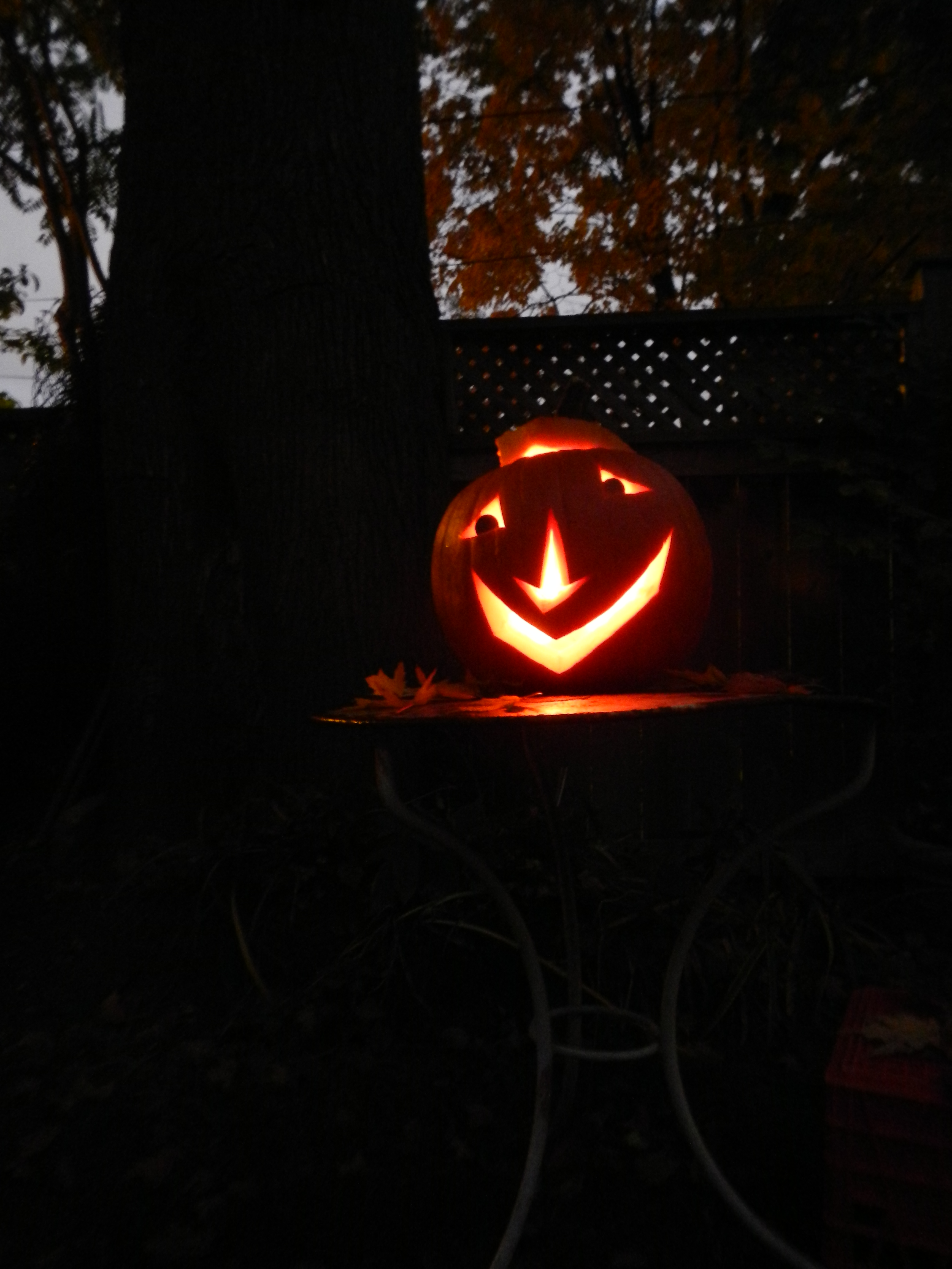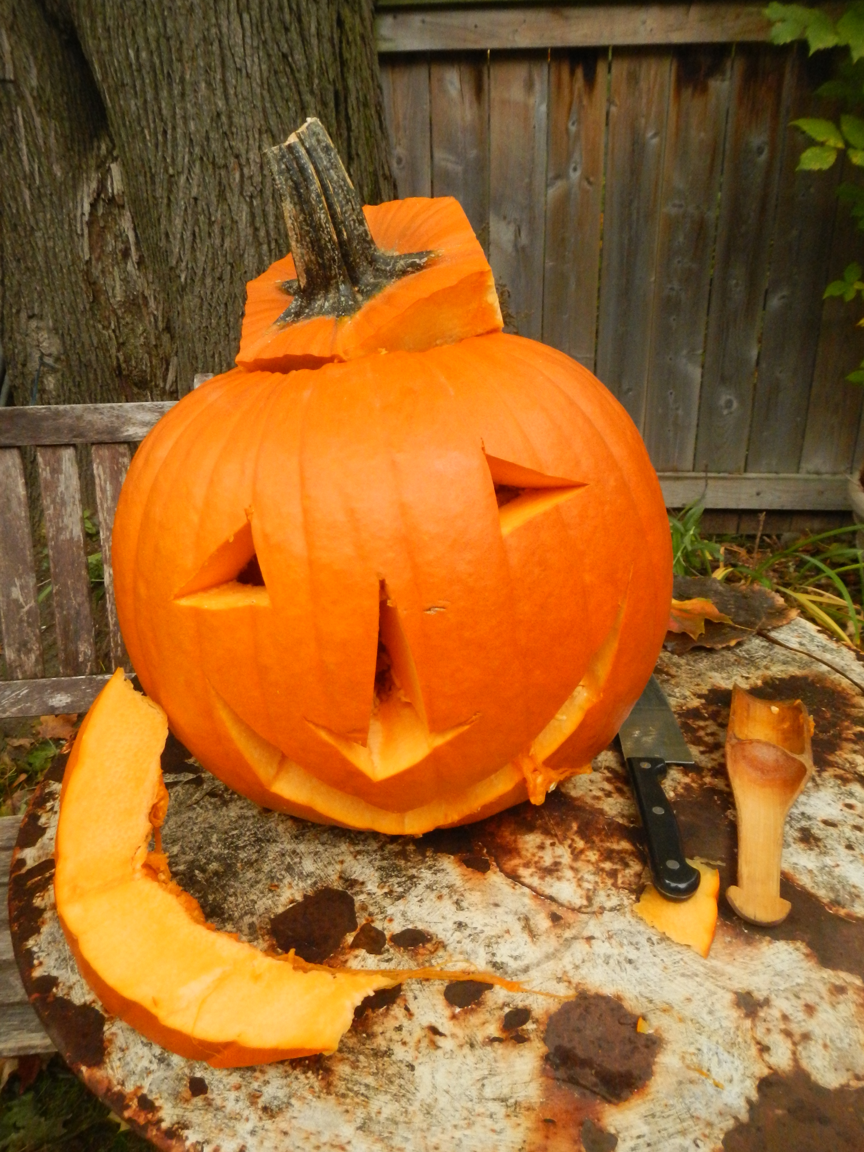 Since childhood I have loved pumpkins – all of them: mini ones, oddly shaped ones, big overgrown ones. And, living in Ontario, we’ve got some of the best, for they’re native to the place, an Amerindian food staple, and a gift to our culture. To carve a pumpkin for Hallowe’en is to express – swiftly and simply – one’s innate artistry and specific personality. What’s not to love, therefore?