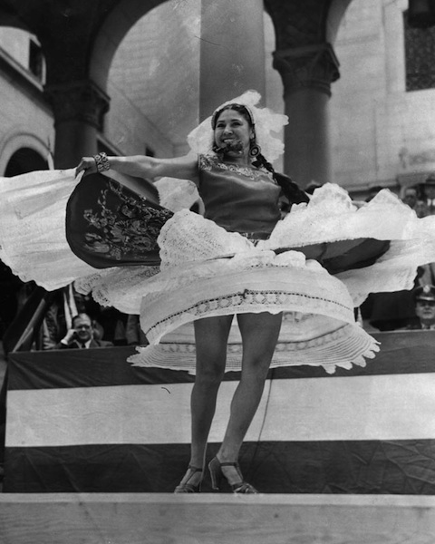 Luz Vasquez dancing on the steps of Los Angeles City Hall_Cinco de Mayo, 1943